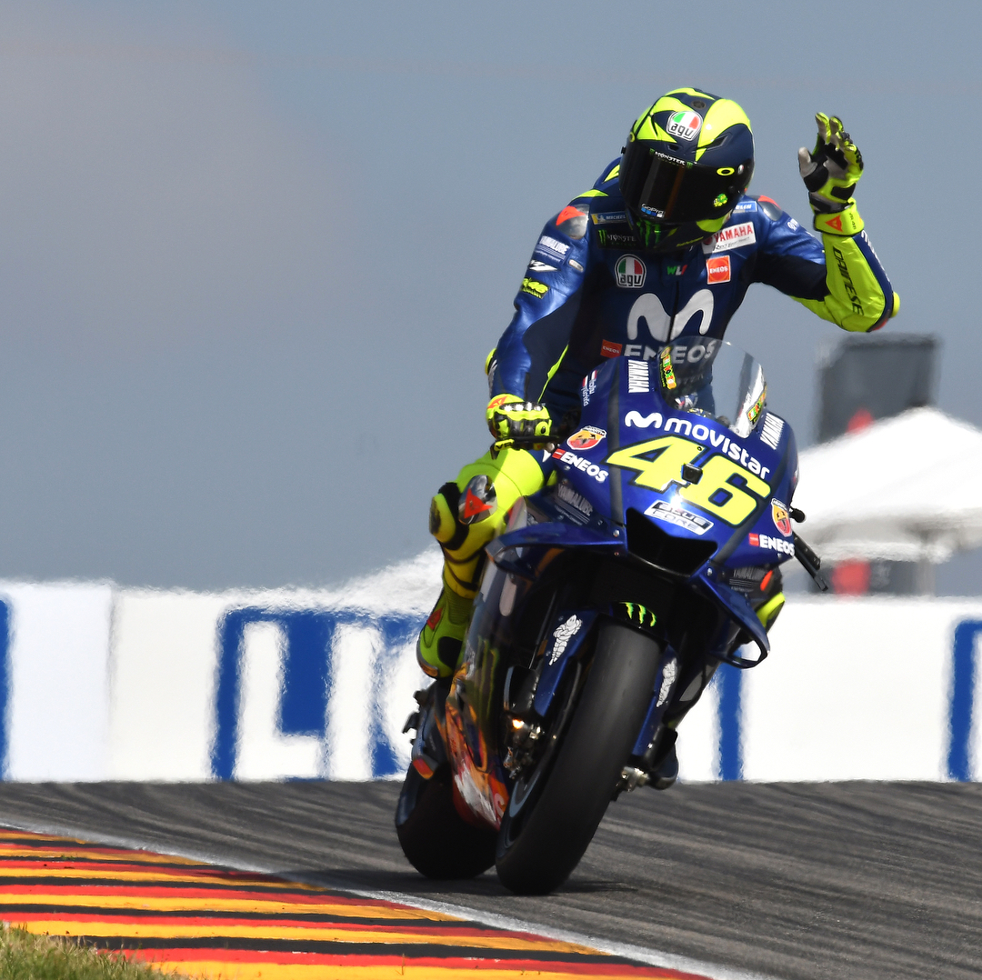 @valeyellow46 and @maverickvinales25 salute the crowds at the Sachsenring.
