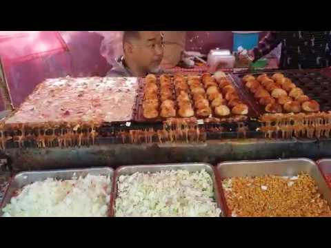 Takoyaki (たこ焼き or 蛸焼) or “octopus balls” is a ball-shaped Japanese snack or appetizer made of a wheat flour-based batter and cooked in a special molded pan. It is typically filled with minced or diced octopus (tako), tempura scraps (tenkasu), pickled ginger (beni shoga), and green onion (negi).