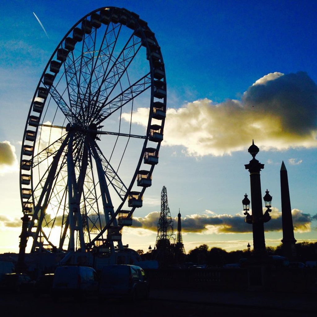 観覧車からどんな景色が見えるのでしょう。The view from the Ferris wheel should be breathtaking.. #パリ #コンコルド広場 #観覧車 #飛行機雲 #ある日のパリの風景 #jal #japanairlines #paris #placedelaconcorde #instatravel
