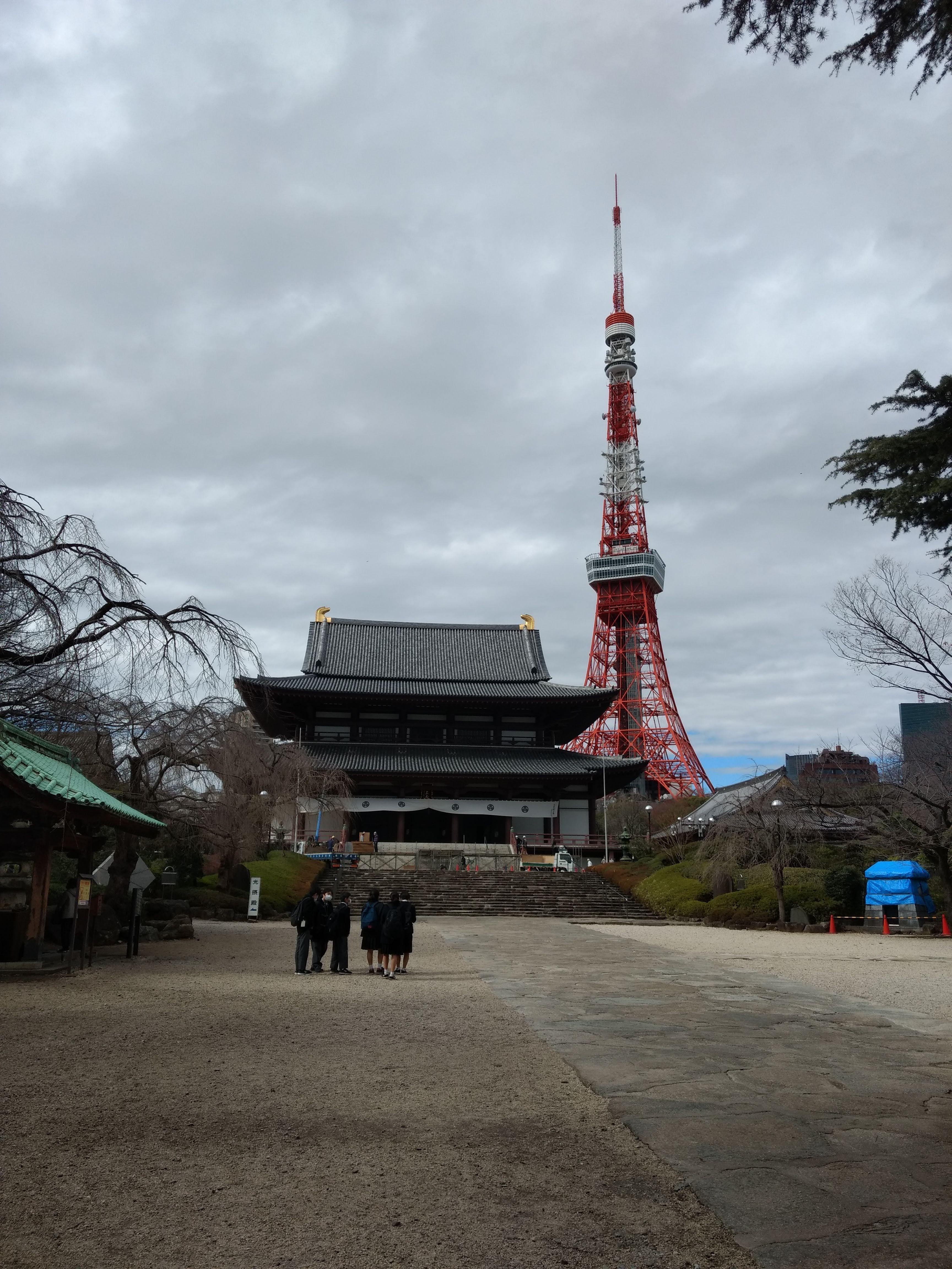 Zojoji Temple and Tokyo Tower Feb. 2020 [OC]