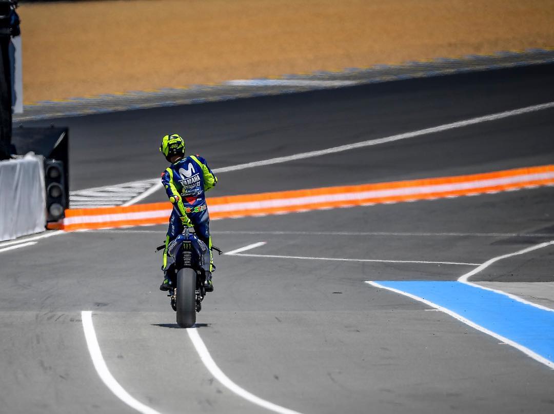 That oh-so familiar sight of @valeyellow46 leaving pit lane. . . #MovistarYamaha | #MotoGP | #FrenchGP #Yamaha#Yamaha MotoGP#yamahamotogpFrenchGPMotoGPMovistarYamahaAloJapan.com