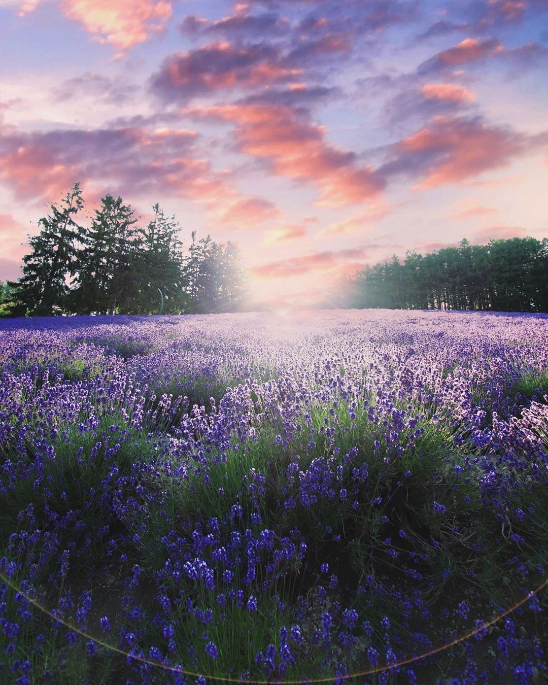 Hokkaido Prefecture is home to some of the most beautiful flower fields in all of Japan. One of the most iconic in summer has to be the various lavender fields. Some fields like the one here grows different types of lavenders, creating a beautiful purple gradation all throughout the field!