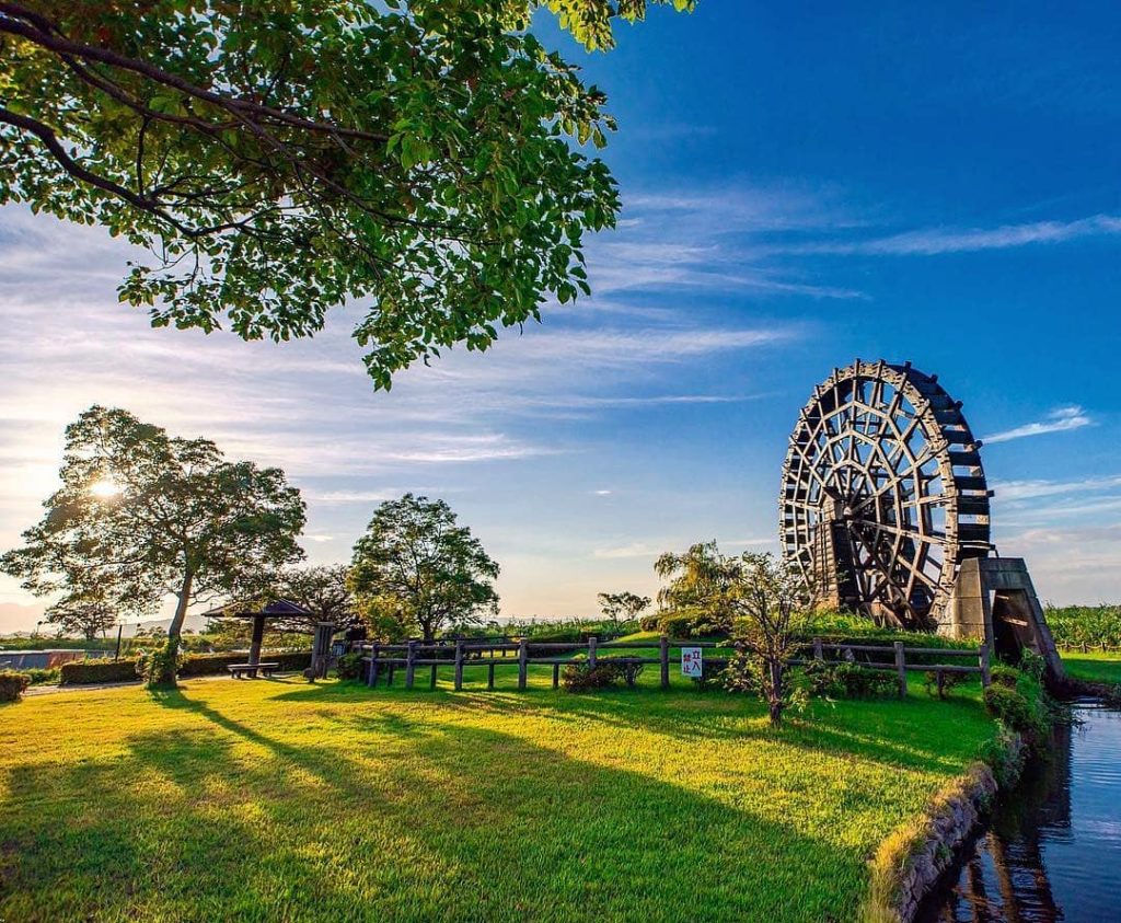Notogawa Waterwheel and Canoe Land on Lake Ibanai, a lagoon on the east side of Lake Biwa, is a great picnic spot especially on a day like this. The symbolic 13 m (43 ft) Notogawa #Waterwheel is one of the largest of the kind in the country. There are Canadian canoes, kayaks, pedal boats, and fishing boats you can have fun with.