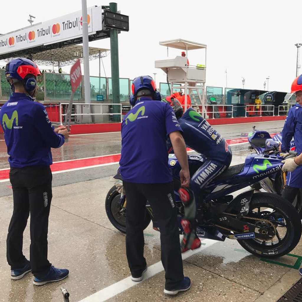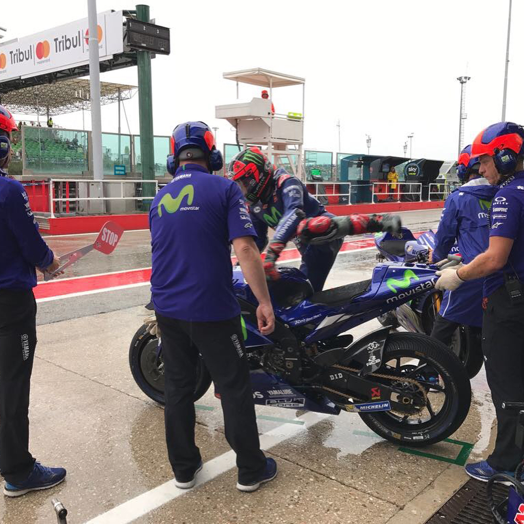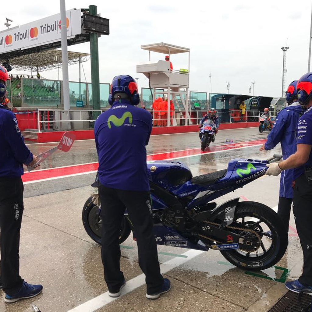 @maverickvinales25 and his crew practised swapping bikes after the warm up session came to an end. Swipe left to see them in action. #MovistarYamaha #MotoGP #SanMarinoGP