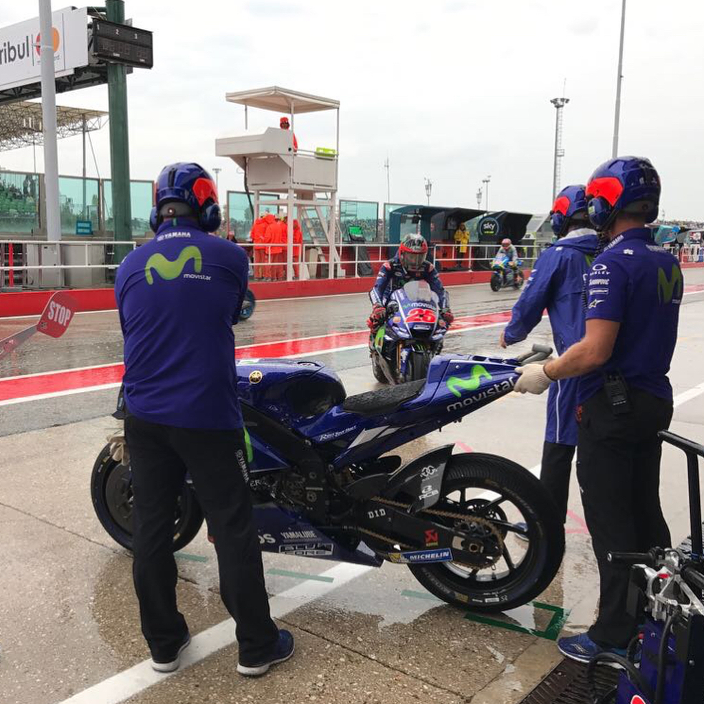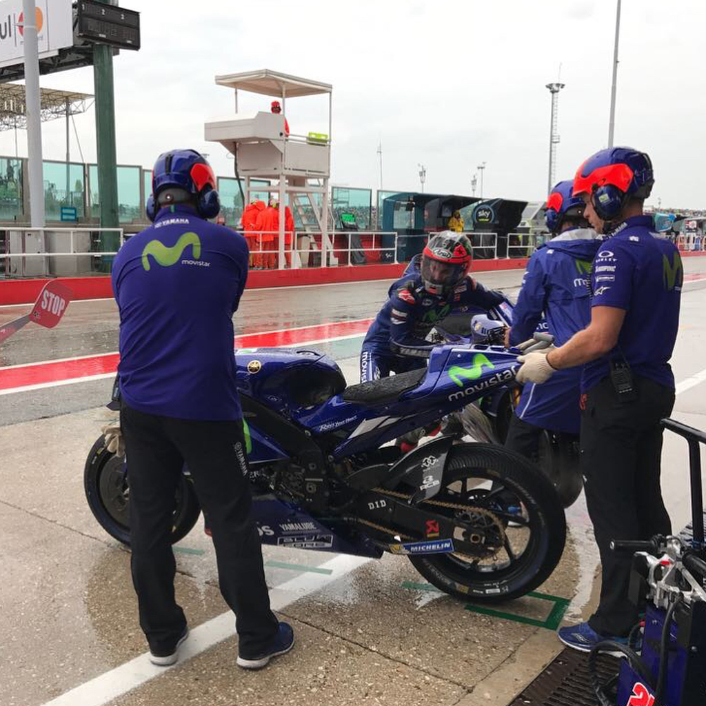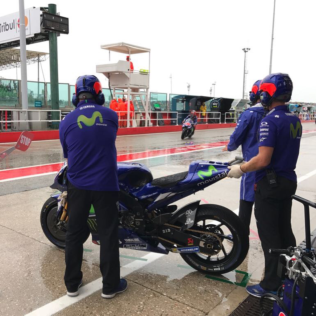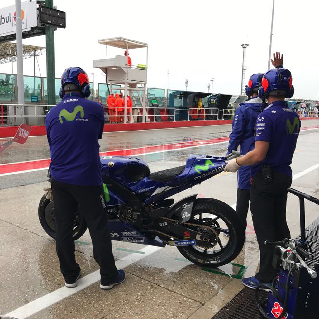 @maverickvinales25 and his crew practised swapping bikes after the warm up session came to an end. Swipe left to see them in action. #MovistarYamaha #MotoGP #SanMarinoGP