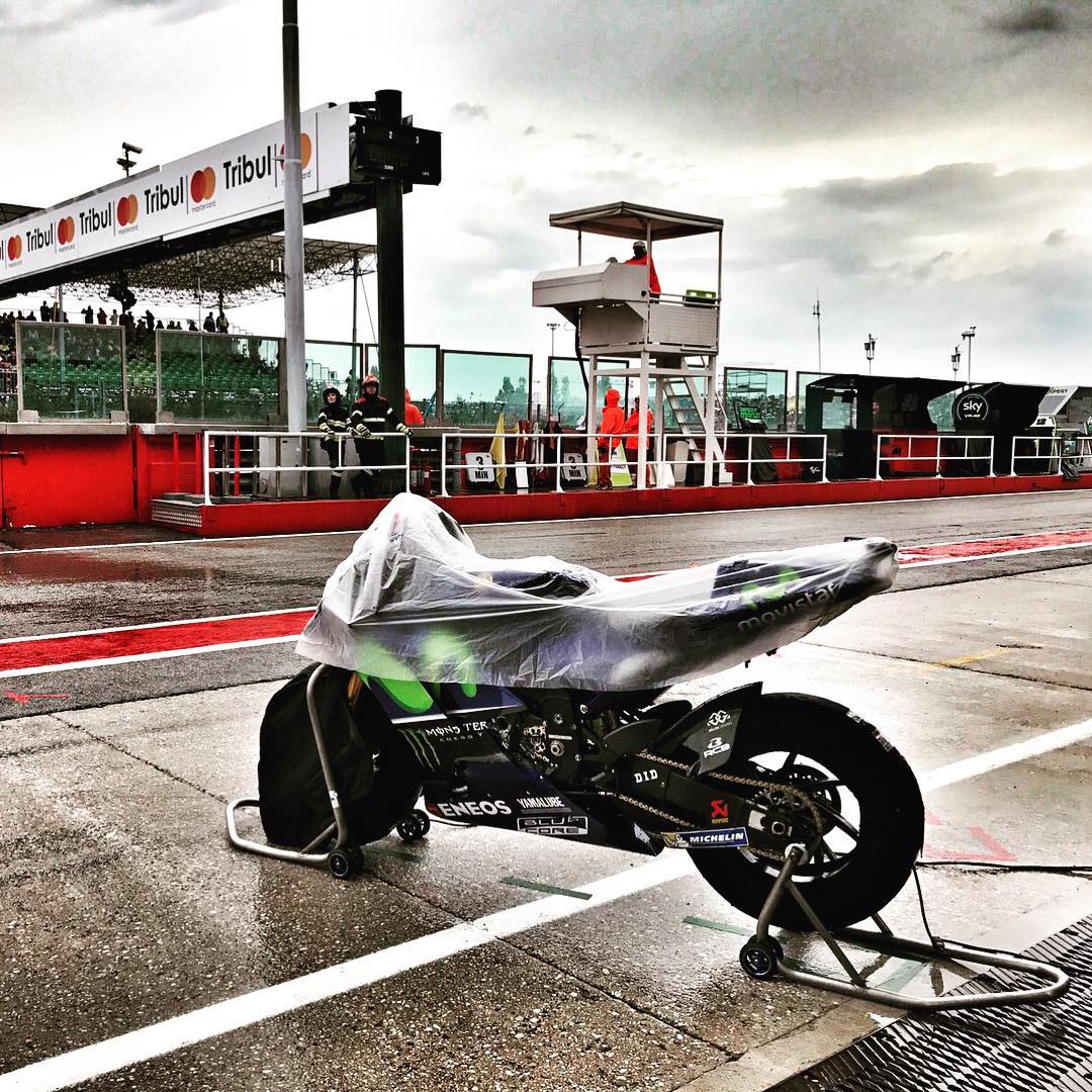 They skies are looking gloomy… Make sure to wear a waterproof poncho at today’s #SanMarinoGP, like our YZR-M1. #MovistarYamaha #MotoGP #Yamaha#Yamaha MotoGP#yamahamotogpMotoGPMovistarYamahaSanMarinoGPAloJapan.com
