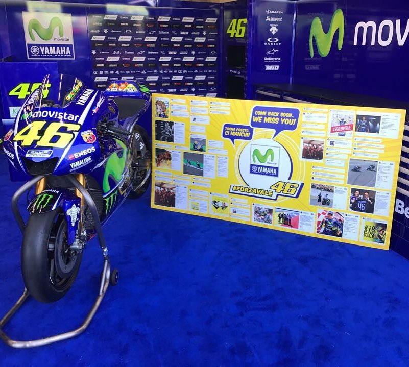 The Movistar Yamaha MotoGP Team has created a special banner, a compilation of well wishes, for @valeyellow46. “Come back soon… We miss you!” #ForzaVale