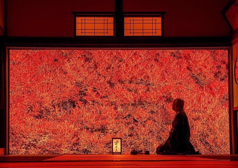 Ankokuji Temple is known for its 150-year-old White Enkianthus which changes to a vibrant red in autumn. This view of countless of red leaves from the main hall looks just like a work of art 🍁