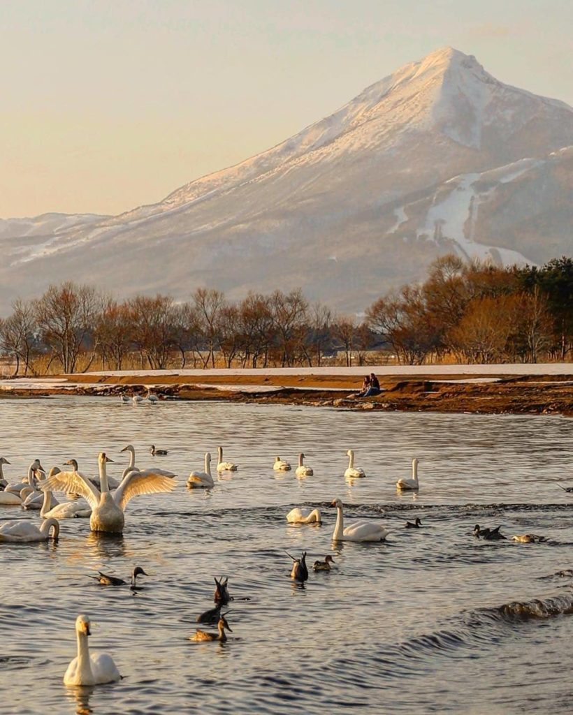 #LakeInawashiro is a wonderful wintering site for swans, ducks, and for you, too. Stroll along the lake to watch the birds basking in the last warmth of the day. And enjoy a wonderful stay at the superb ski resorts and hot-springs of #MtBandai . .