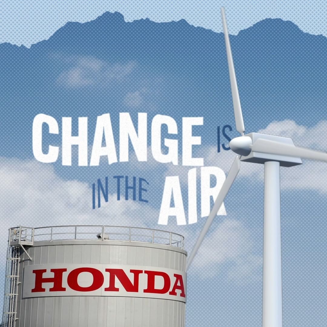 Honda has voluntarily committed to becoming carbon neutral by 2050. Two onsite wind turbines at one of our plants generate the equivalent of the average yearly energy use of 1,000 homes.* 🌬️