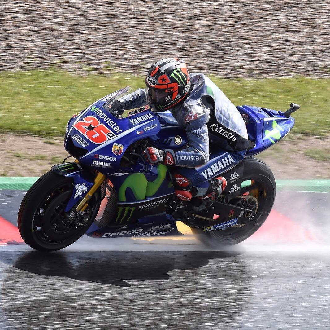Mixed conditions: bright sunshine + lots of spray. #MovistarYamaha #MotoGP #GermanGP #Yamaha#Yamaha MotoGP#yamahamotogpGermanGPMotoGPMovistarYamahaAloJapan.com