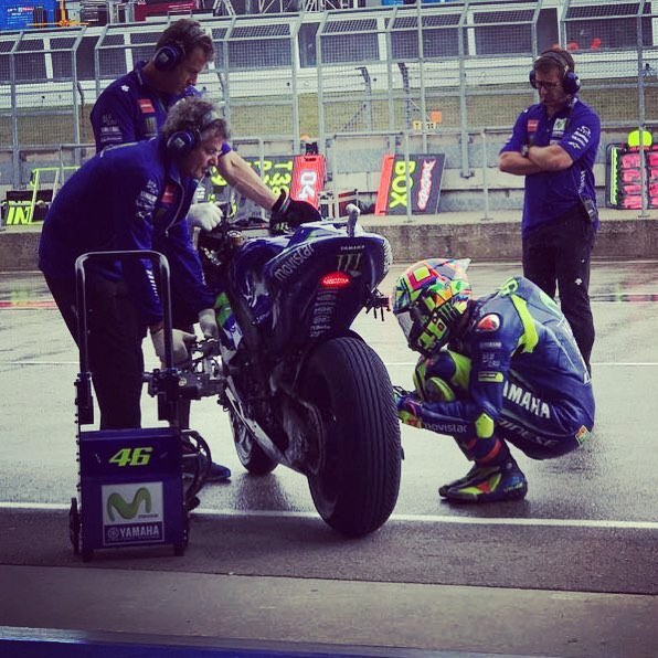 Rear light on for the Doctor as he headed out on track in the wet FP2 session. #MovistarYamaha #MotoGP #GermanGP #Yamaha#Yamaha MotoGP#yamahamotogpGermanGPMotoGPMovistarYamahaAloJapan.com