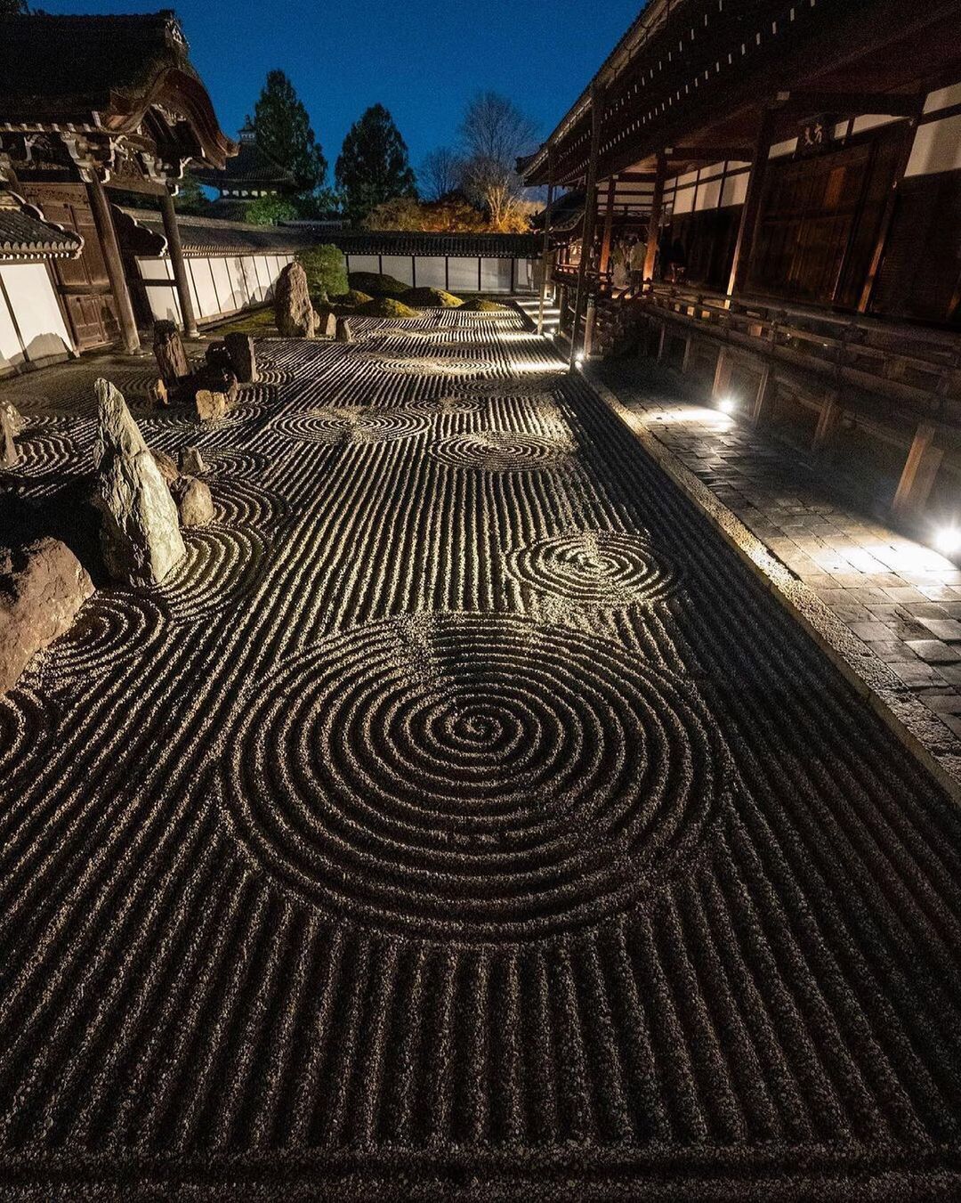 Tofukuji Temple has four zen gardens, each with different combinations of gravel, stones, moss, and trees. Its southern garden is especially notable for the beautiful shadow-play and patterning in the sand.