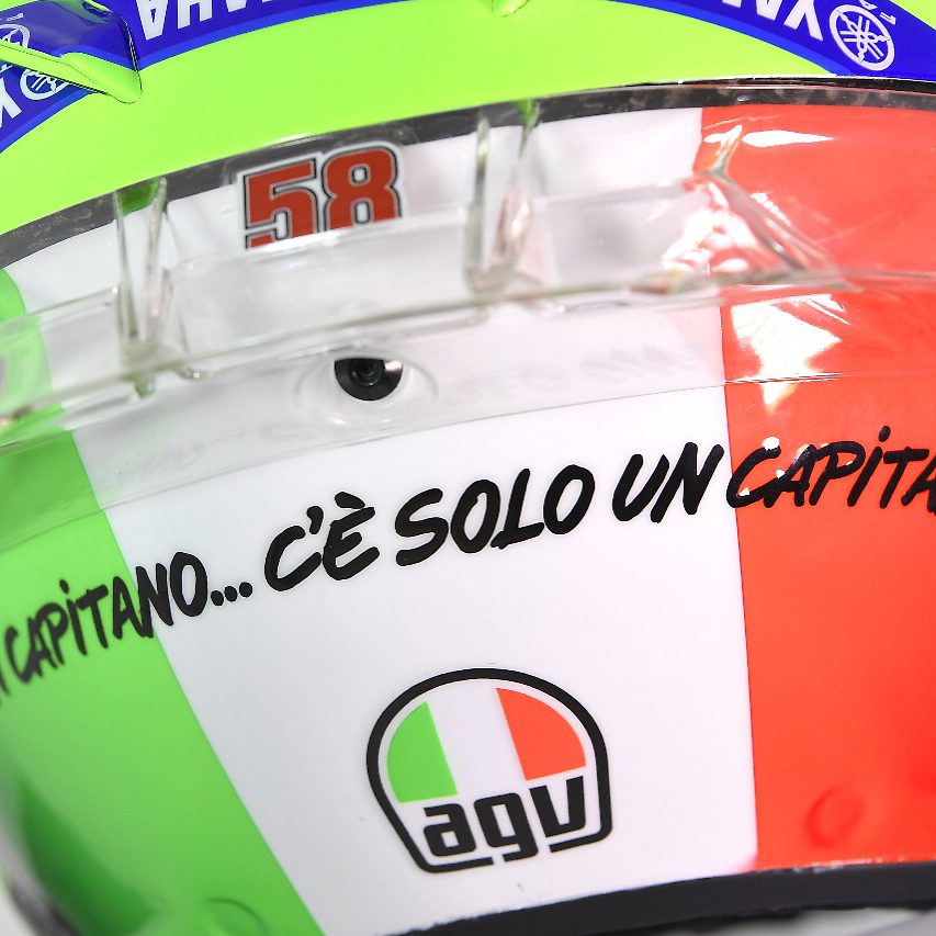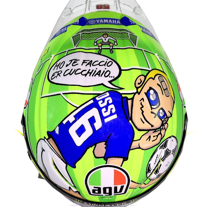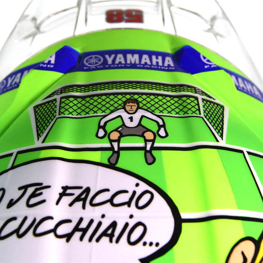 As per tradition, Valentino Rossi presented his special helmet for the Italian GP. This year’s design pays tribute to Nicky Hayden (69), Marco Simoncelli (58) and retiring Italian football captain Francesco Totti. #MovistarYamaha #MotoGP #ItalianGP #RideOnKentuckyKid @valeyellow46