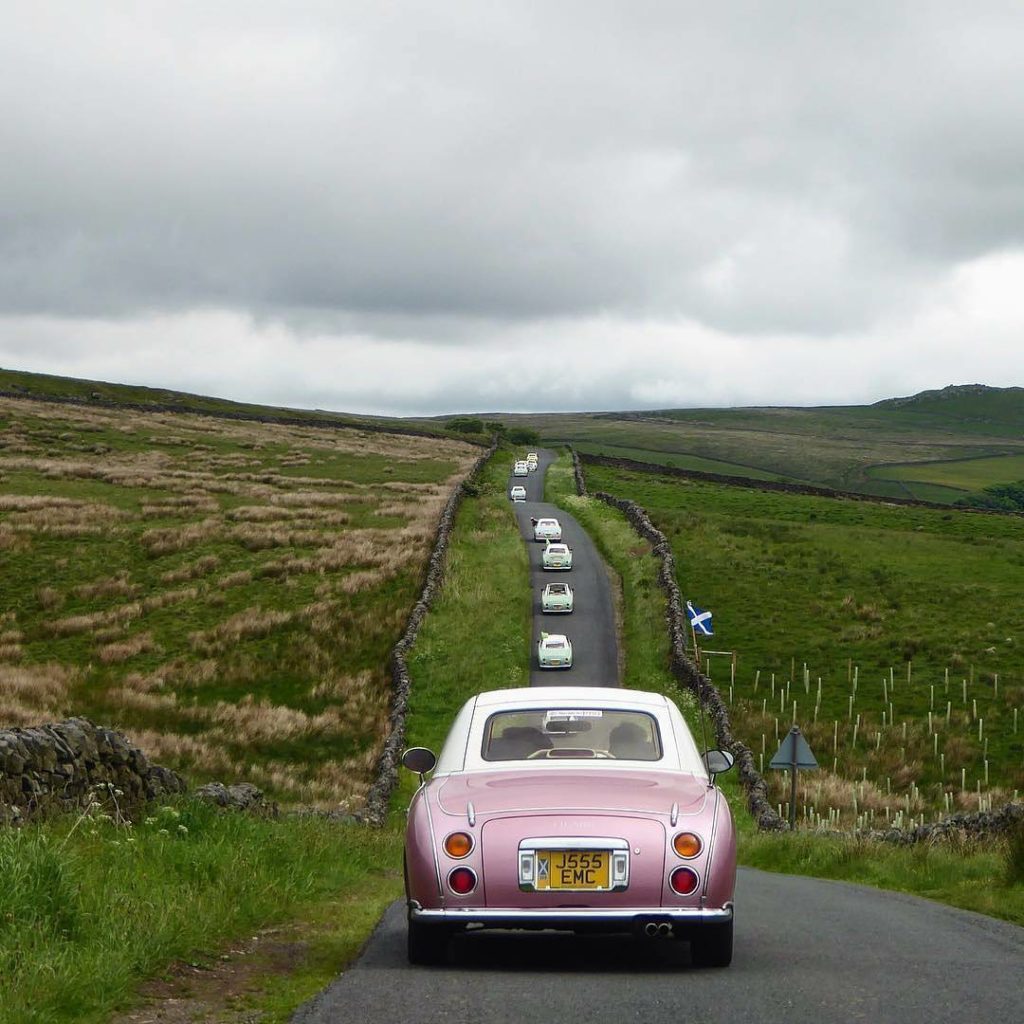 Road trips are better with friends. #roadtrips #weekenddrives #Figaro #vintage #figdales 📷@nissanfigaroownersclub