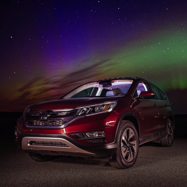 This morning’s light display, known as aurora borealis, created a stunning back drop for @AndyStenz’s road trip in Shawano, Wisconsin with the #HondaCRV we loaned him.