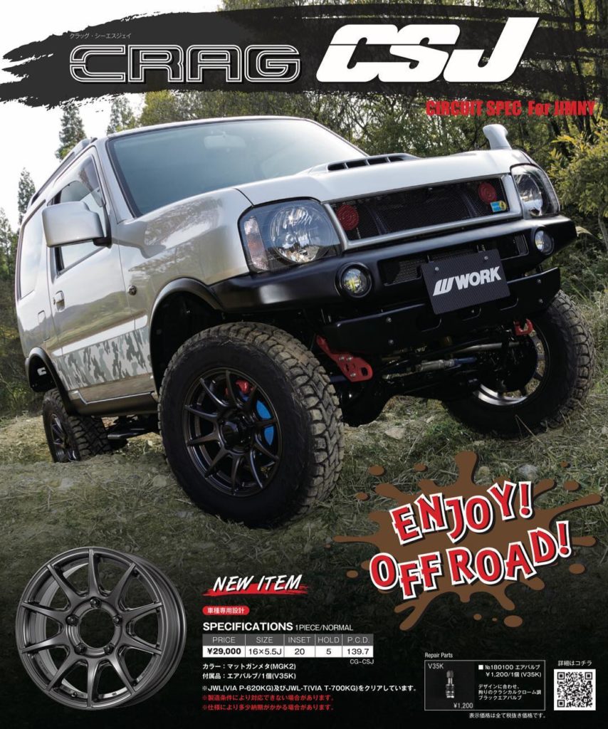 CRAG CSJ DEBUT !!! CIRCUIT SPEC FOR JIMNY. ENJOY ! OFF ROAD !新製品CRAG CSJ 登場!! ラリー競技で鍛え上げられたM.C.O Racingからのフィードバックによるスポーツ走行に適した無駄のないシンプルなデザインと剛性を最大限活かしたホイールとなっております。#workwheels #workwheelsjapan #workcrag #wheels#Work Wheels#Work Wheels Japan#workwheelsjapanworkworkcragworkwheelsAloJapan.com