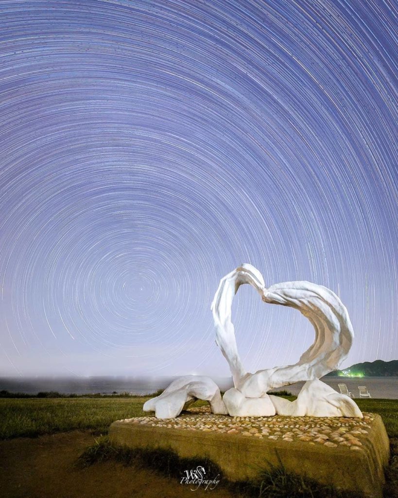 These beautiful #startrails were captured at Cape Hado (#Hadomisaki) on the tip of Higashi Matsu-ura-hanto Peninsula in Saga Prefecture. The heart shaped sculpture made the cape a popular dating spot. At nearby Genkai Underwater Observation Tower, you can watch numerous marine creatures through the windows set 7 m (23 ft) under the sea.