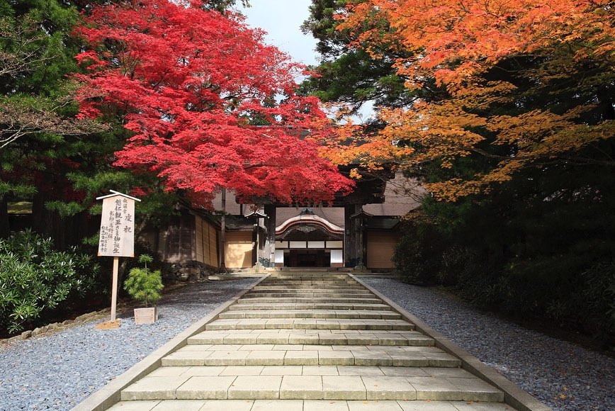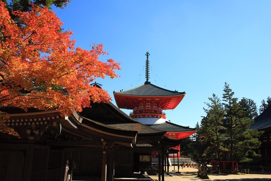As autumn comes to Koyasan in Wakayama, the crimson temple architecture is accented by the red hues of the changing leaves 🍁 And the Japanese maples lining Jabaramichi Road form a natural tunnel of of colorful fall foliage 😍