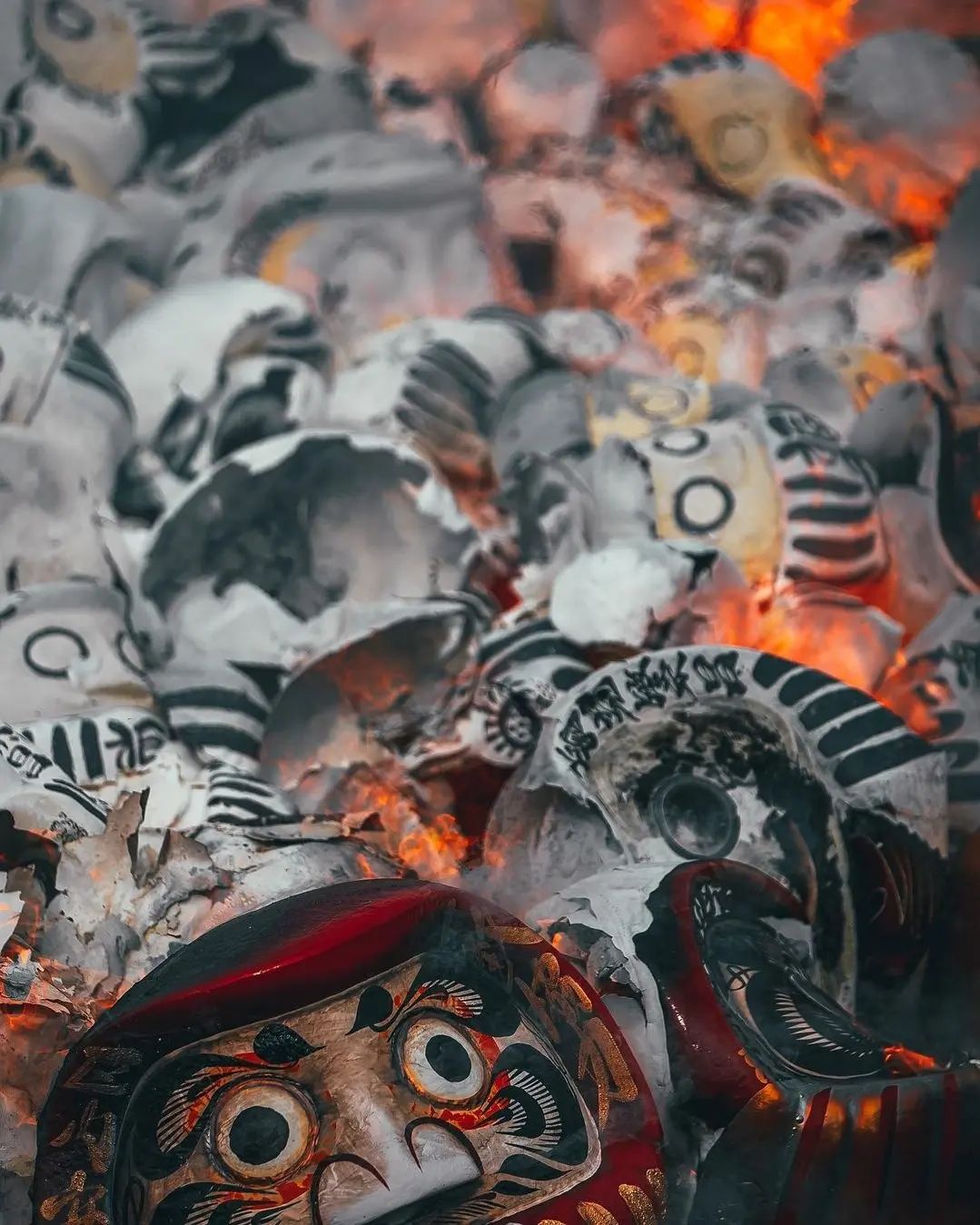 At the start of the year, old daruma are thanked for the luck and prosperity they’ve provided, and burned in a bonfire on the temple grounds.🔥