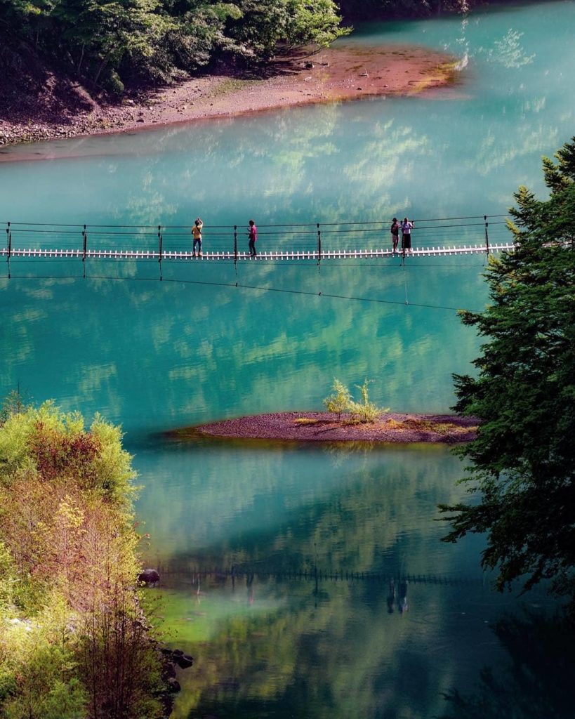 How about a thrilling experience at Sumatakyo Gorge? The 90m (295ft) long rickety #suspensionbridge called Yume no Tsuri Bashi over breathtaking Oma Dam Lake is a must visit if you are looking for some adventure. You’ll be stunned by the colors of the water that changes time to time from milky blue to turquoise green.