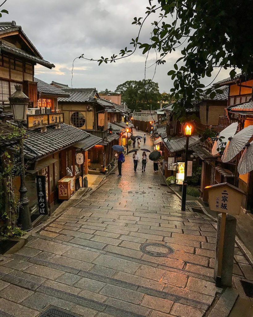 Strolling down the traditional #Gion streets in the rain isn’t all that bad! @the_flying_pizza_ managed to capture this atmospheric photo despite the bad weather so don’t feel bad if it rains!⠀