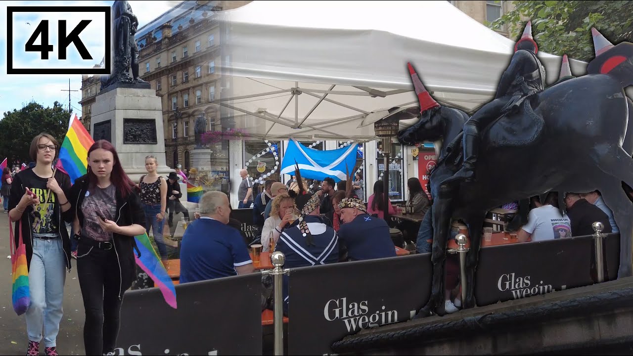 A walk around the bustling centre of Glasgow, Scotland’s biggest city on a Saturday afternoon in Summer. We meander through the various shopping streets which were also full of well dressed Scottish football fans ahead of their World Cup Qualifying game later that day (they won π).