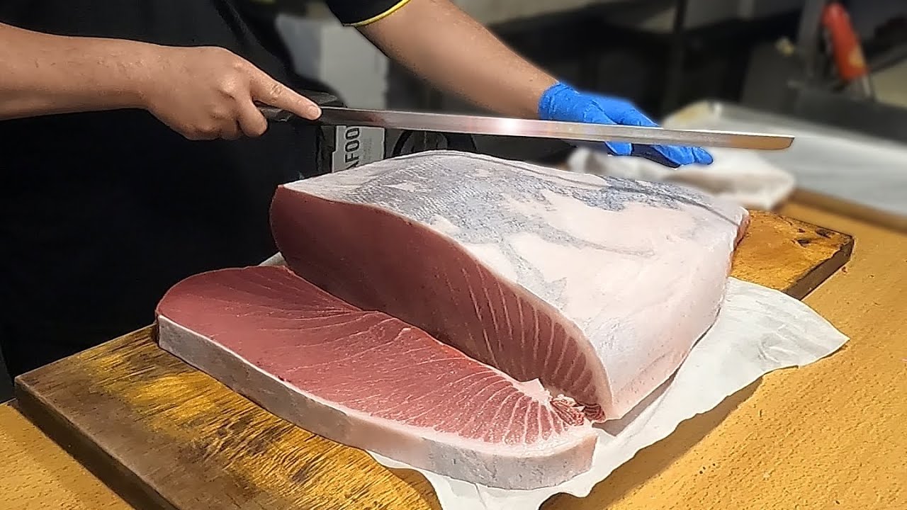 Japanese Food – GIANT BLUEFIN TUNA FISH CUTTING Sashimi Bowl Tokyo Japan