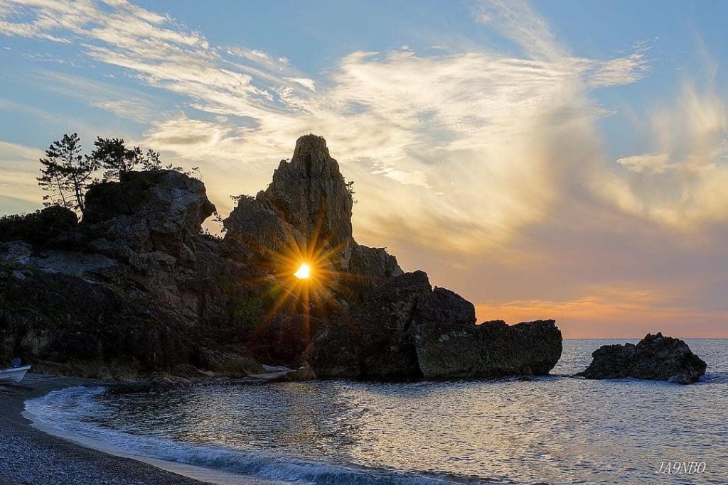 From October to November, you’ll have the best chance to capture the sun setting right in the window of #MadoIwa at Sosogi Coast!