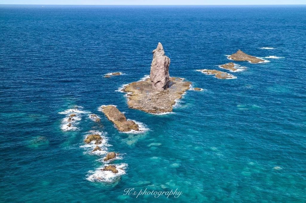 A 30-minute walk on the ridge of #CapeKamui will reward you with this spectacular scenery. The tragic love story of #Ainu Princess, Charenka, is said to have ended here where her heartbroken spirit transformed into these rocks standing in the sea of #ShakotanBlue.