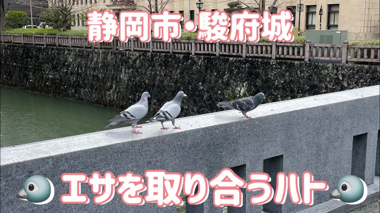 静岡市にある駿府城の二ノ丸橋でエサを取り合うハトを動画撮影しました。