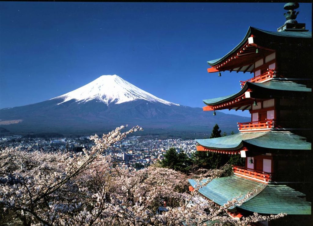 Viewed here from Yamanashi Prefecture, Mt. Fuji is 12,388 feet high and is the highest mountain in Japan. With unrivaled magnificence and a beautiful cone shape, Mt. Fuji has often been selected as the subject of paintings and literature. It is world famous as a symbol of Japan.
