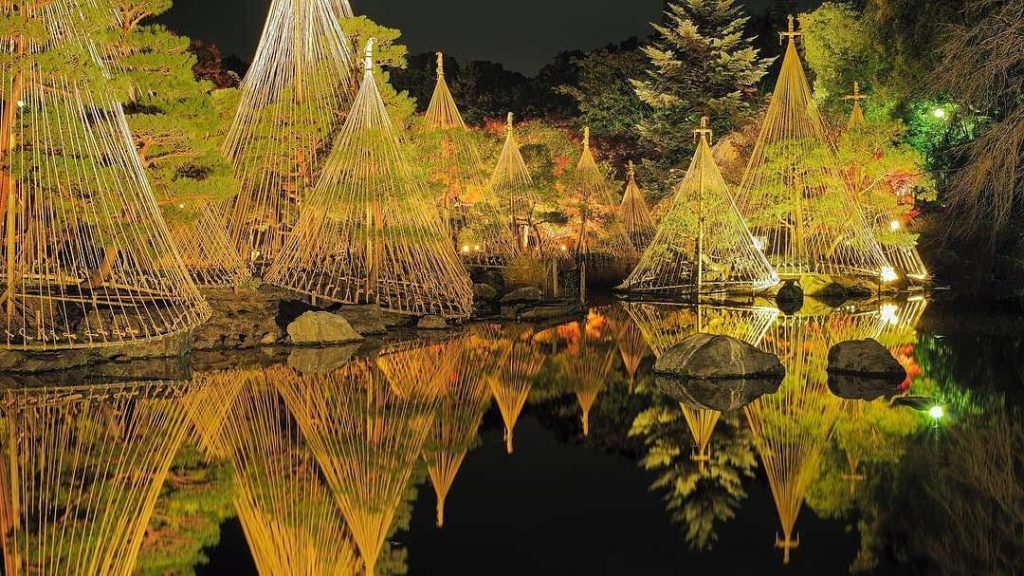 Visiting Nagoya area around November 23rd to December 9th? Then don’t miss the artistic illuminations of #ShirotoriGarden ! Traditional fall foliage peeping takes such a fascinating style here with lit-up #Yukitsuri ropes and lanterns made of #Minowashi.