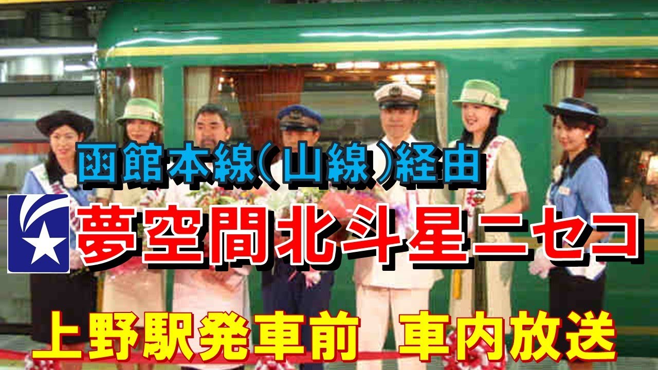 01年9月、上野-札幌間24系寝台特急「夢空間北斗星ニセコ号」車内放送を収録。JR北海道の24系寝台6両+電源車に、JR東日本の「夢空間」3連を連結した豪華編成で運行。定期「北斗星」の走行する室蘭本線・千歳線経由ではなく、長万部から函館本線山線経由での運行でした。 車内放送は「鉄道サウンド広場」(本館)で多数公開中! http://railway-sound.travel.coocan.jp/ 24系寝台JR北海道JR東日本SapporoSapporo destinationsSapporo tourSapporo travelSapporo tripSapporo vacation上野夜行列車夢空間北斗星ニセコ寝台特急札幌車内放送 1 Comment おおとり527 3 years ago 聞いた話によると北海道新幹線が札幌まで延伸されると函館本線山線〔長万部〜小樽〕が廃止されます♪倶知安は新幹線単独駅になるみたいです♪Write A CommentYou must be logged in to post a comment.
