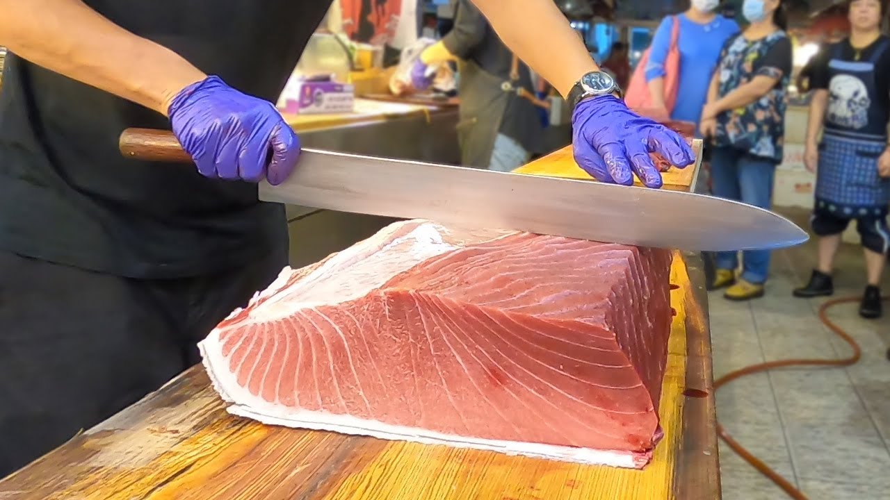 Luxurious sashimi giant bluefin tuna cutting -Taiwanese Street Food