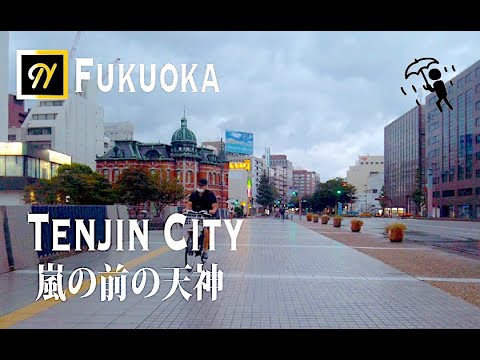 台風10号が迫り来る天神の街を、雨の中散歩 Walk on Tenjin city approaching typhoon Haishen in Fukuoka.【4K】