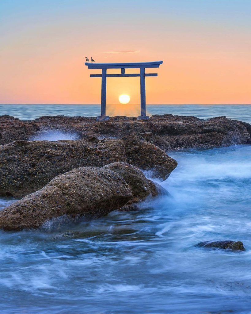The Oarai Isosaki Shrine in Ibaraki prefecture has an alluring lone torii gate by the ocean. @muuu34 caught this mystical shot and left us all in awe!⠀