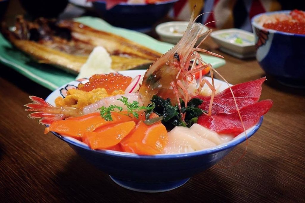 At #SapporoCentralWholesaleMarket, you can taste this gorgeous #seafoodricebowl topped with salmon caviar, sea urchin, shrimp, salmon, scallops, tuna, and more!⠀