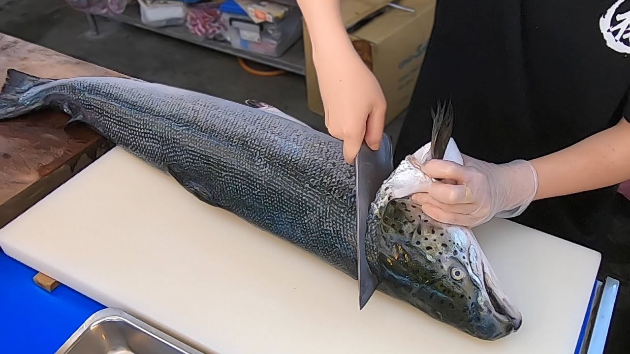 Salmon Cutting Skills 鮭魚切割技能 – How to Cut a Salmon for Sashimi