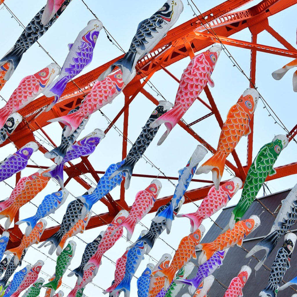 “Koinobori” (carp streamers) are seen at Tokyo Tower on Sunday. The traditional decorations are used in Japan to celebrate “Kodomo no Hi” (Children’s Day), which falls on May 5 every year. Parents hope that their kids will grow up big and strong like the carp, which swim upstream against the current. (@miura.yoshiaki photos)