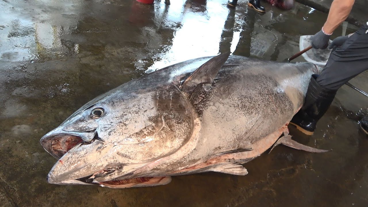 Cá ngừ vây xanh hơn 300 kg được cắt hoàn hảo và nhanh chóng