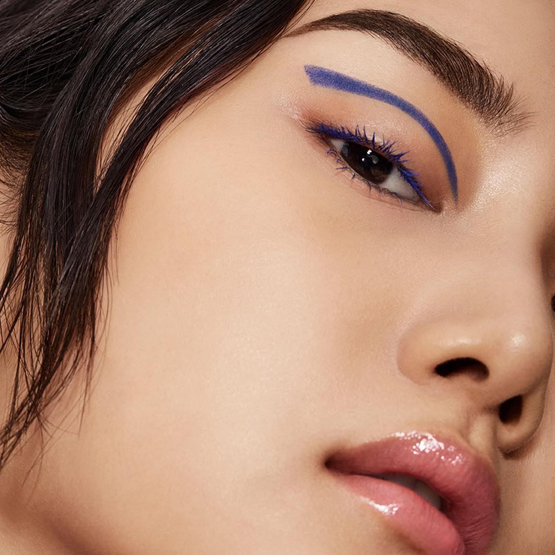 A bold band of color just above your crease adds even more impact to ControlledChaos MascaraInk in Sapphire Spark. Try Kajal InkArtist in Gunjo Blue for striking, smudge-proof results. #japanesebeauty #jbeauty