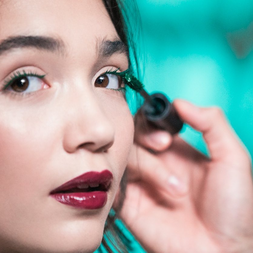 Opposites attract. Contrast bold, bright lashes with a moody merlot lip. ControlledChaos MascaraInk in Emerald Energy and LacquerInk LipShine in Patent Plum make the perfect pair. #japanesebeauty #jbeauty