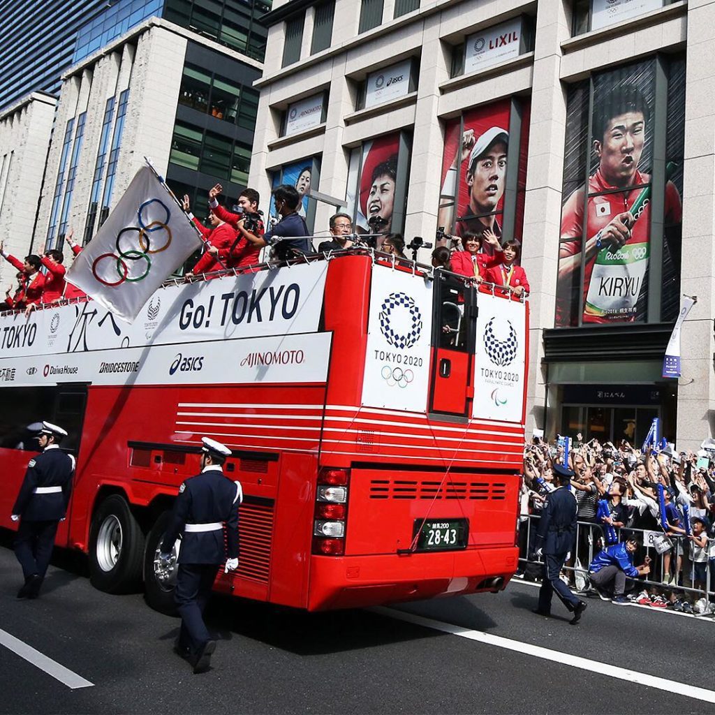 Welcoming the olympic flag #tokyo #tokyo2020 #totokyo2020 #olympics #paralympics #ginza #celebrations #rio2016 #seeyouintokyo #medalistparade #メダリスト Photo by AFLO SPORT