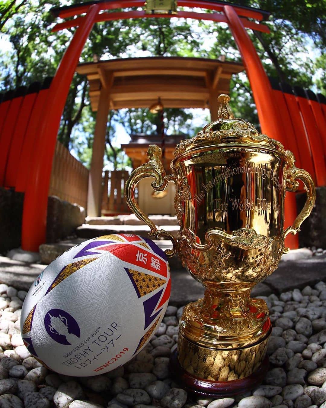 The Webb Ellis Cup visited Shimogamo Shrine in historic Kyoto yesterday during #RWC2019 trophy tour. What a beautiful place! 🇯🇵🏆⛩ Reposted from @rugbyworldcup