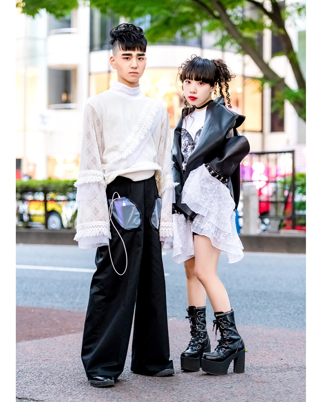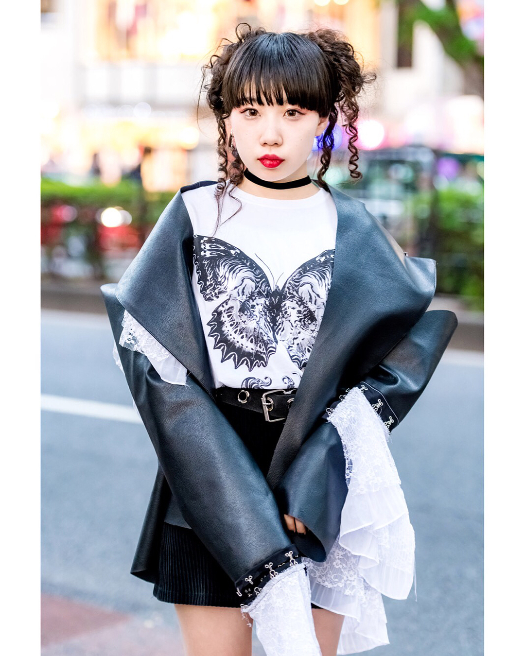 16-year-old Billimayu (@mayu_fancy) and 18-year-old Beni (@beni9s) on the street in Harajuku. We ran into them after they had just finished at a photo shoot, so they are both wearing outfits handmade by aspiring Japanese fashion designer – and current fashion student – @T_K_Y524.