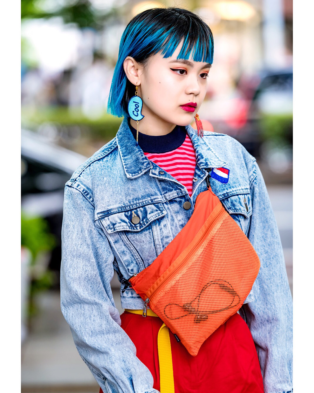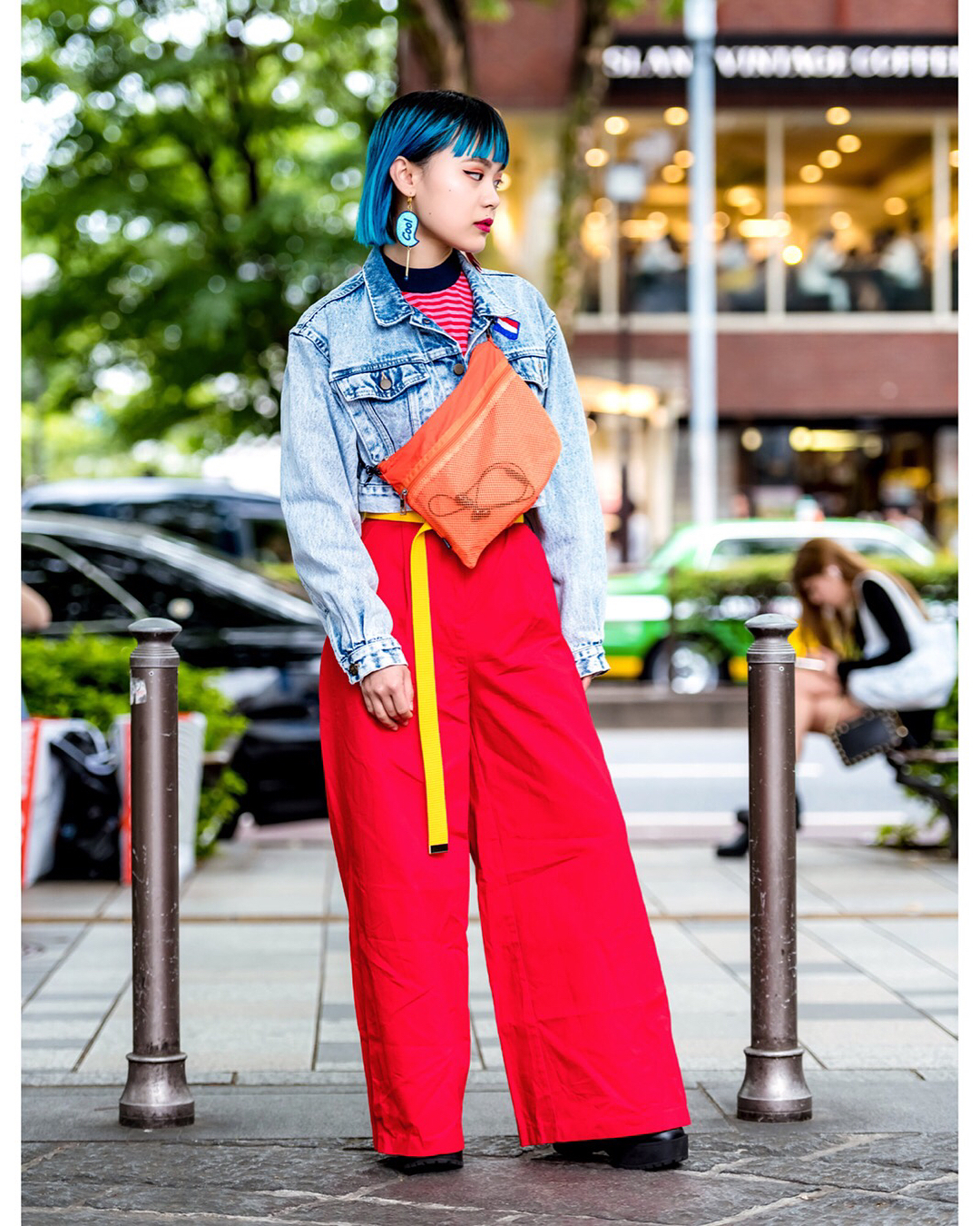 @Tokyo Fashion: Erina (@iammaruu) on the street in Harajuku wearing a denim jacket over a Joue…