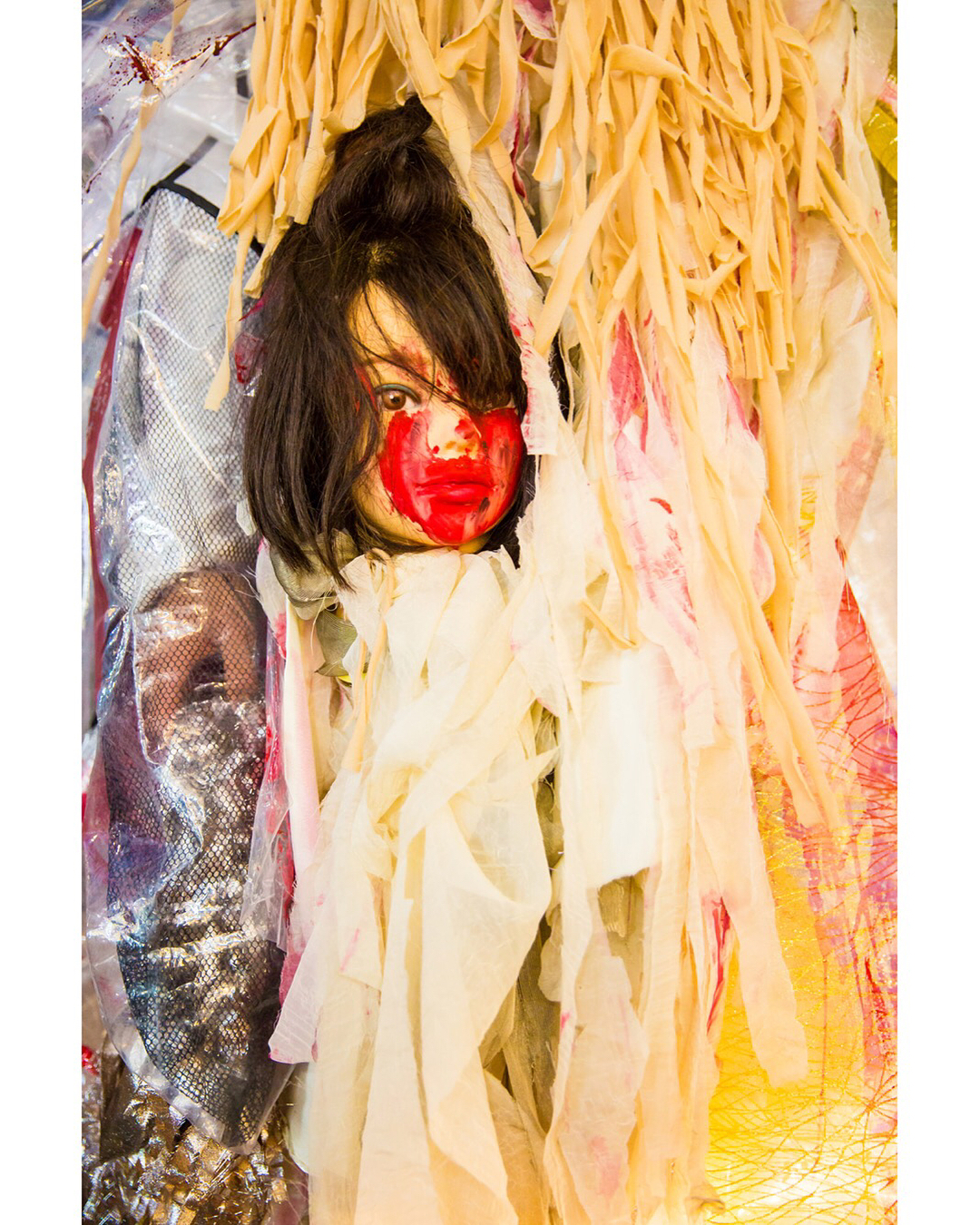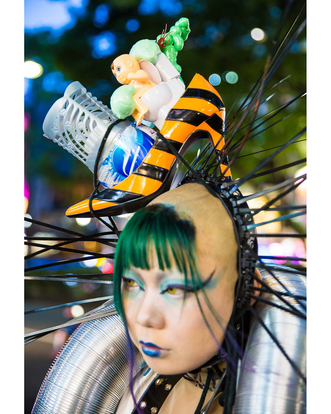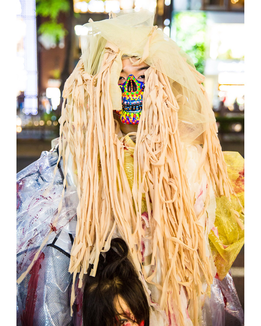 Japanese students Kanji (@freiheit2348.texas7347) and Sakuran (@Sakuran_is_) on the street in Harajuku wearing avant-garde looks with mostly handmade and remake fashion as well as Demonia, YRU, and Dolls Kill items.