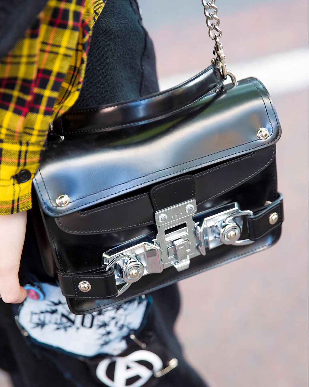 @Tokyo Fashion: Hyaku on the street in Harajuku wearing a black and yellow look with layered han…