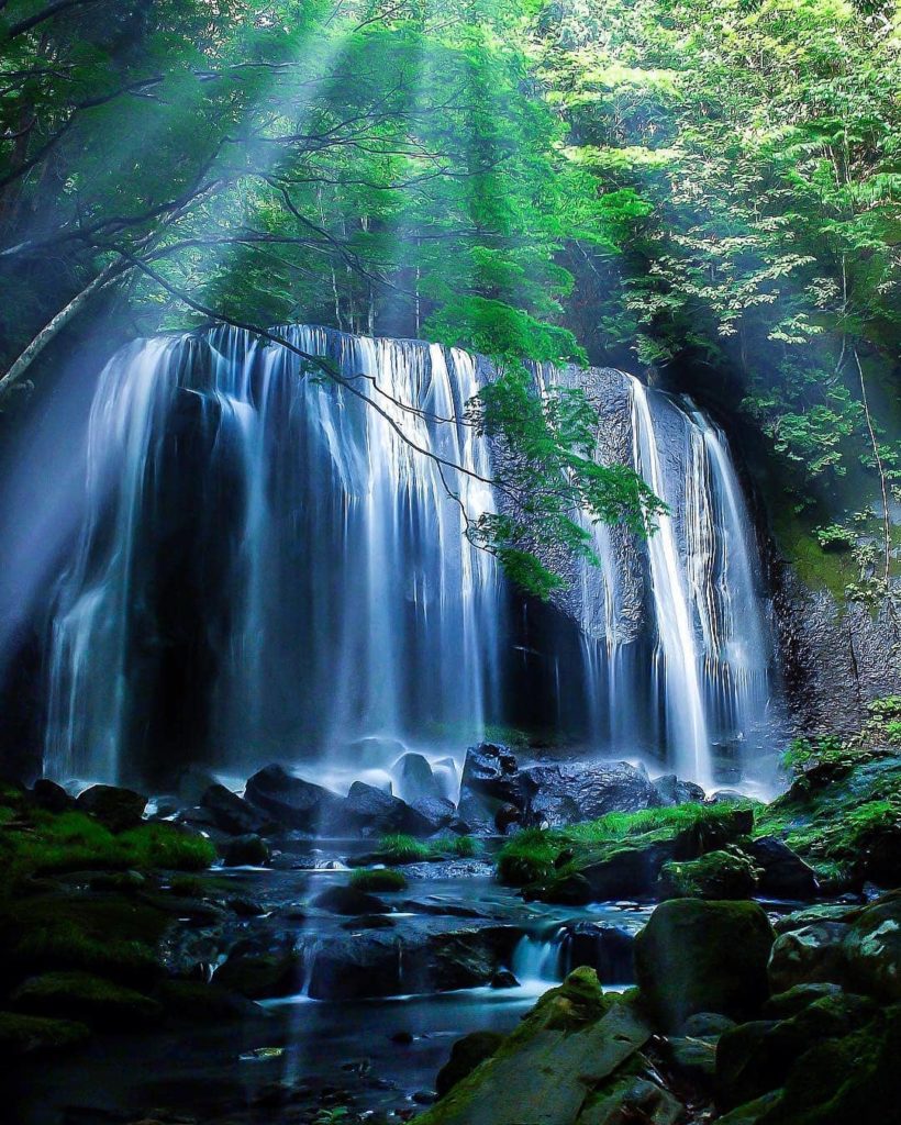 A 40 min drive from #Inawashiro #Station and 10 min walk along the sparkling flow of Fudo River will bring you to this graceful #TatsusawaFudoFalls. In the sunbeams streaming through the fresh verdure of the spring forest, you’ll have a wonderfully revitalizing experience.